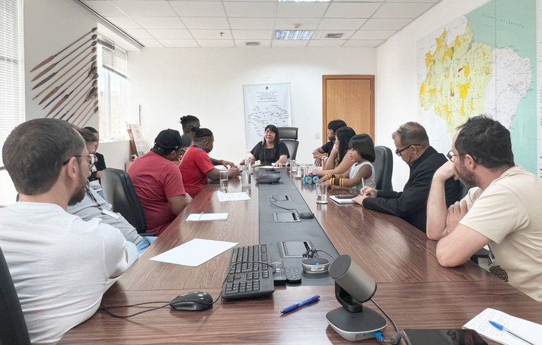 presidenta da Fundação Nacional dos Povos Indígenas (Funai), Joenia Wapichana, e líderes do povo Krenak, conversaram sobre a situação do processo demarcatório da Terra Indígena Krenak de Sete Salões em cuja área de cerca de 12 mil hectares encontra-se sobreposto o Parque Estadual Sete Salões, em Minas Gerais. O território está localizado às margens do Rio Doce, fortemente contaminado pelos rompimentos da Barragem de Fundão, ocorrido em 2015 no município de Mariana (MG), e da Barragem de Brumadinho (MG), em 2019.